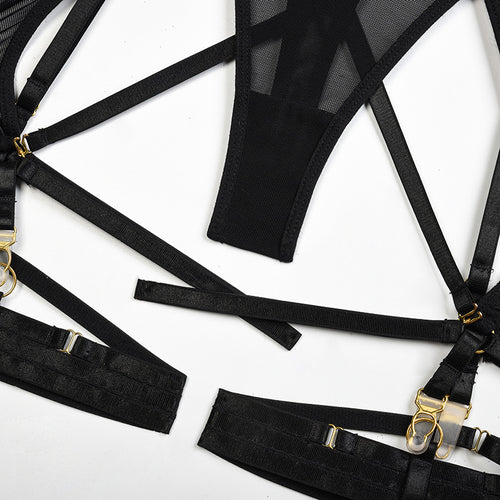 Solid Color Mesh Bra Set with Multi-Adjustable Straps