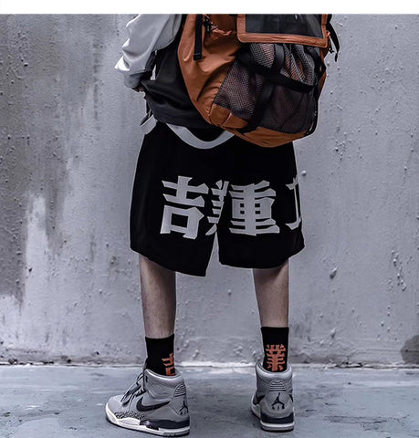 Techwear Style Print Hip Hop Pants Men Summer Streetwear Loose Cargo Shorts Cotton Jogger Streetpants Black